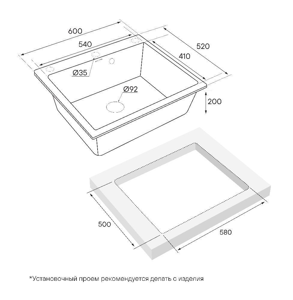 Paulmark KANTE 60, мойка, гранит, белый