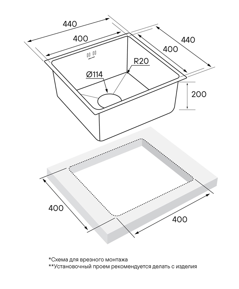 Paulmark VISTA 44, мойка, нержавеющая сталь