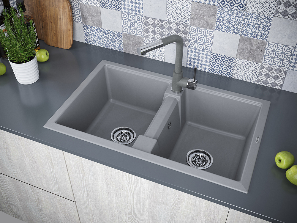 Paulmark TANDEM 80/2, мойка, гранит, серый металлик