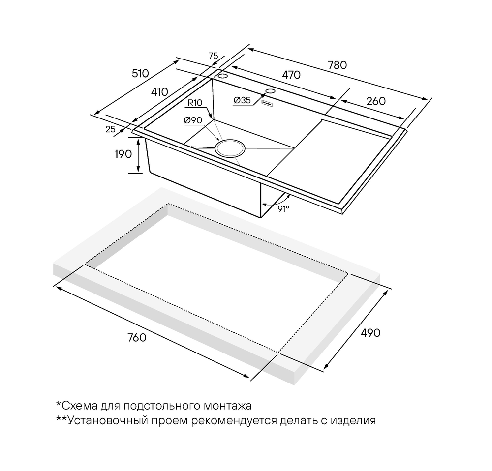 i Наличие и расположение крыла кухонной мойки — слева, справа или с обеих сторон. Крыло оборачиваемой мойки можно расположить с любой стороны.