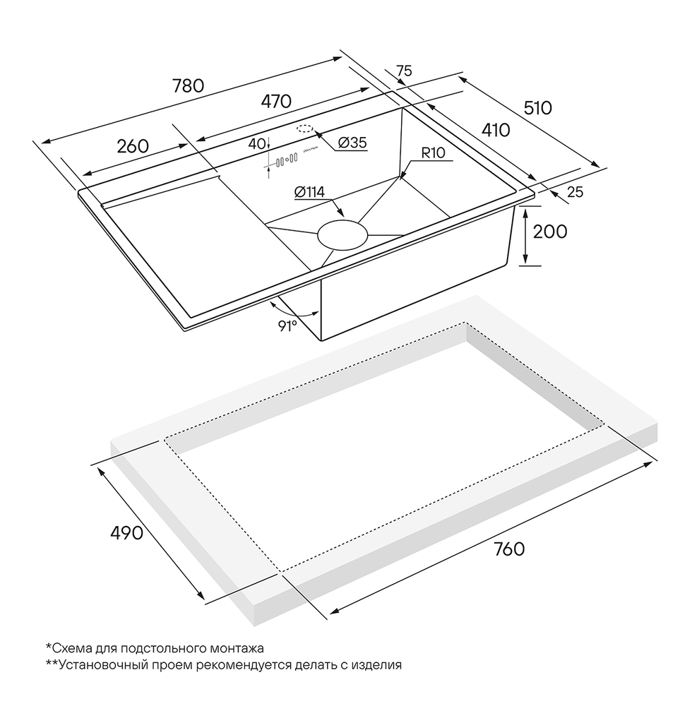 врезная/в уровень со столешницей |
