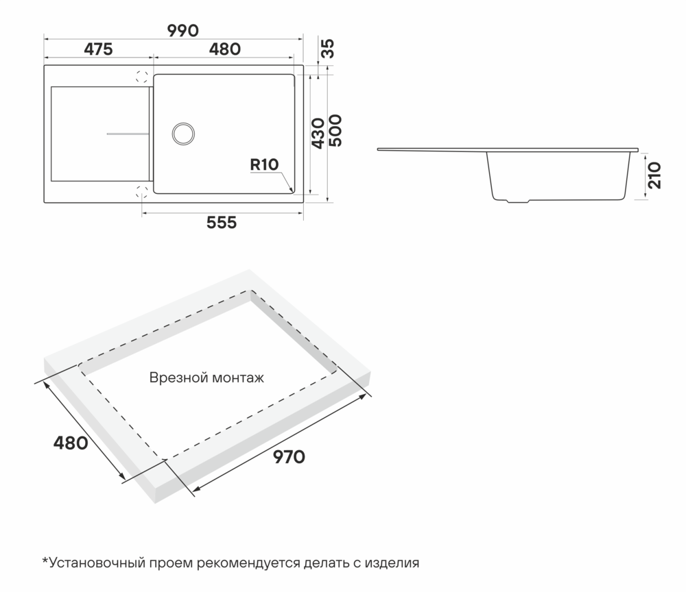 i Наличие и расположение крыла кухонной мойки — слева, справа или с обеих сторон. Крыло оборачиваемой мойки можно расположить с любой стороны.