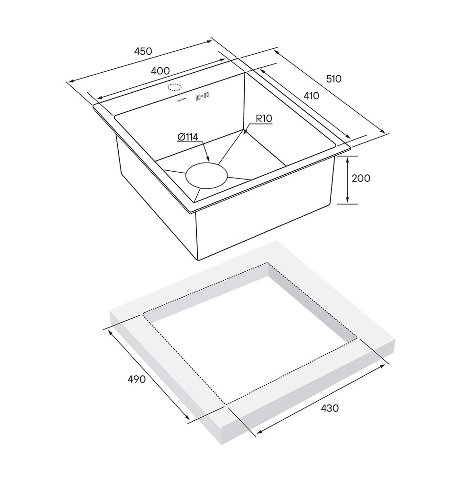 i Расстояние от дна до верхней кромки чаши мойки. Оптимальная глубина — 15-18 см. Чем глубже мойка, тем меньше брызг попадет наружу.