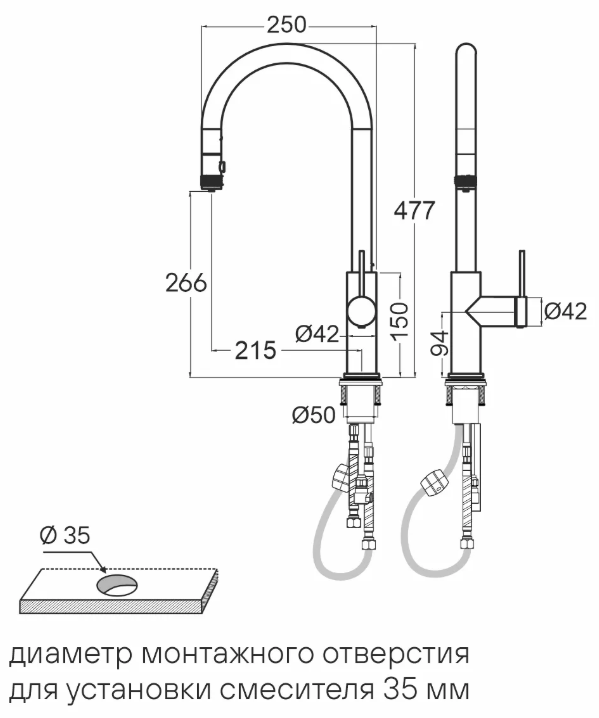 i Встроенная в кран насадка на длинном гибком шланге с металлической оплеткой. Насадки с кнопкой могут переключать обычный излив воды на душ.