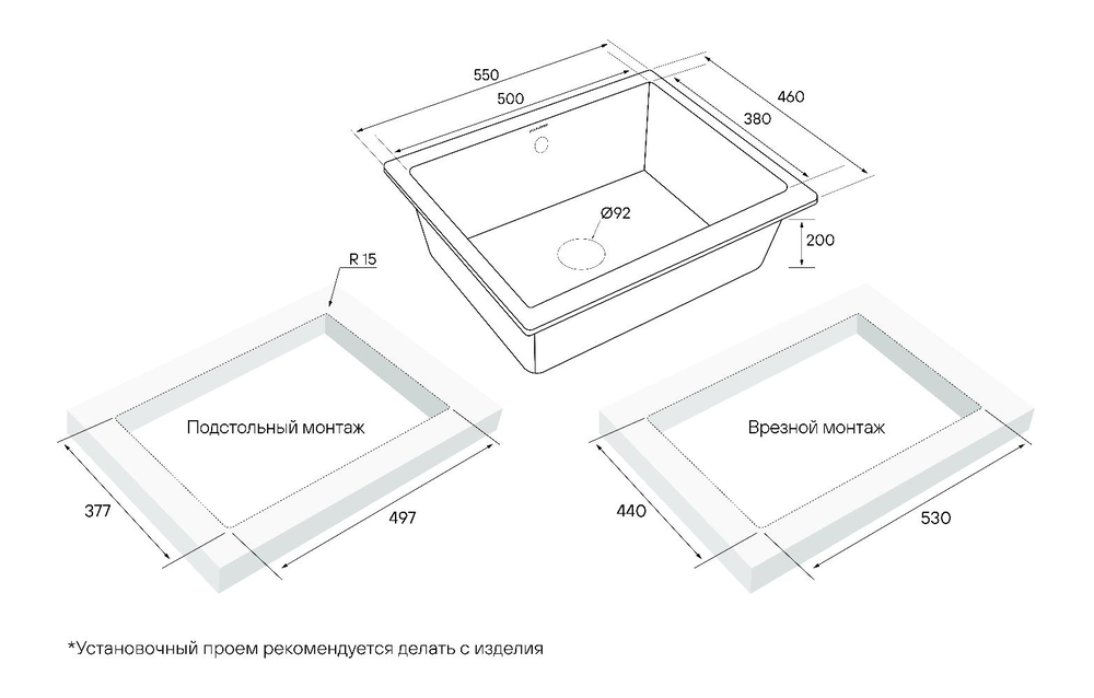 i Расстояние от дна до верхней кромки чаши мойки. Оптимальная глубина — 15-18 см. Чем глубже мойка, тем меньше брызг попадет наружу.