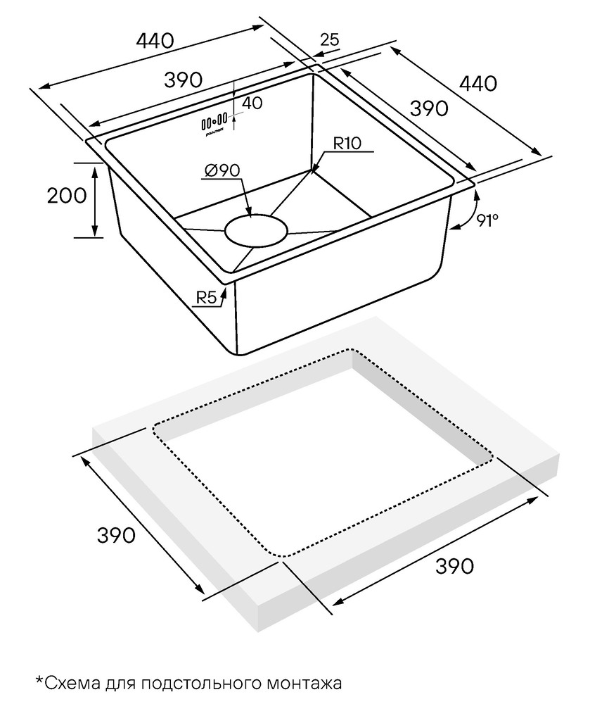 врезная/под столешницу/в уровень со столешницей |