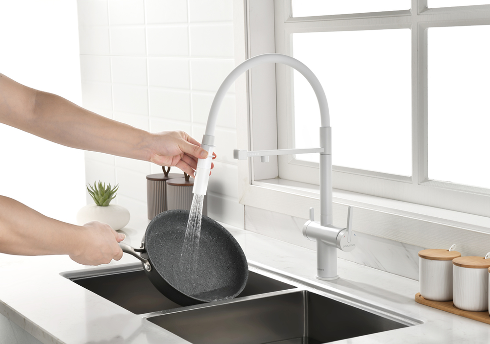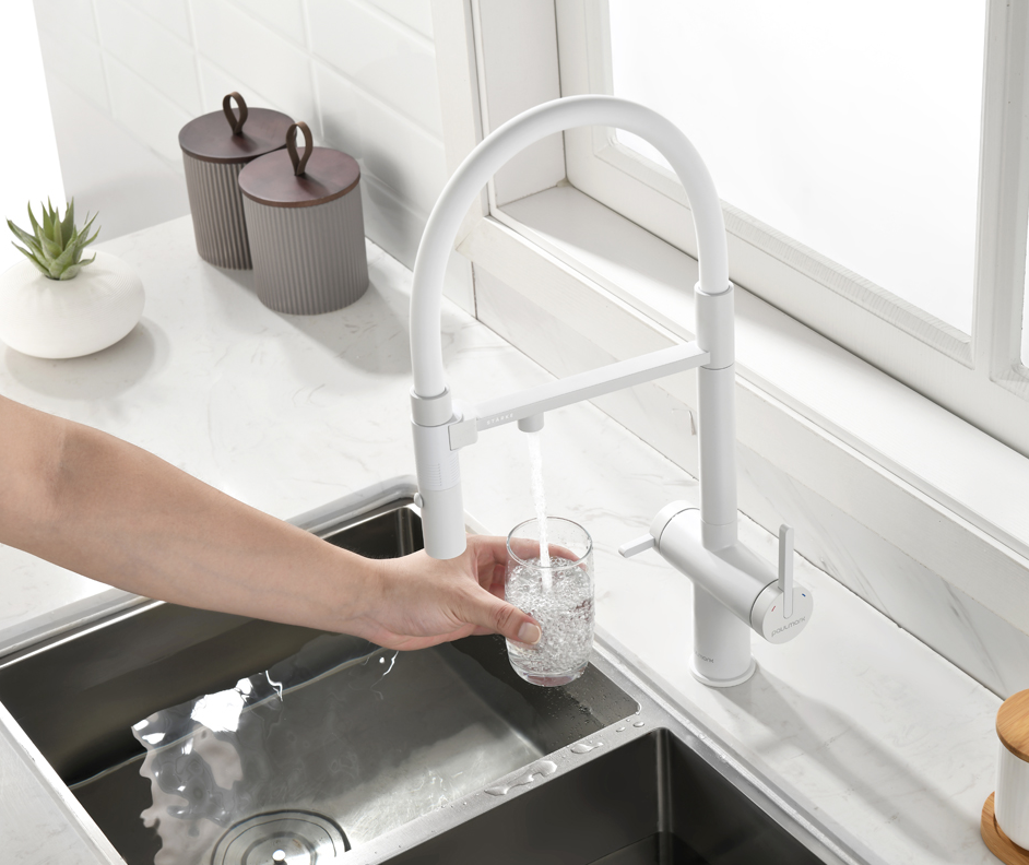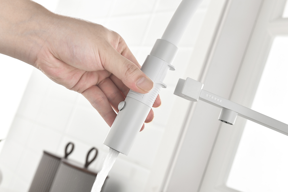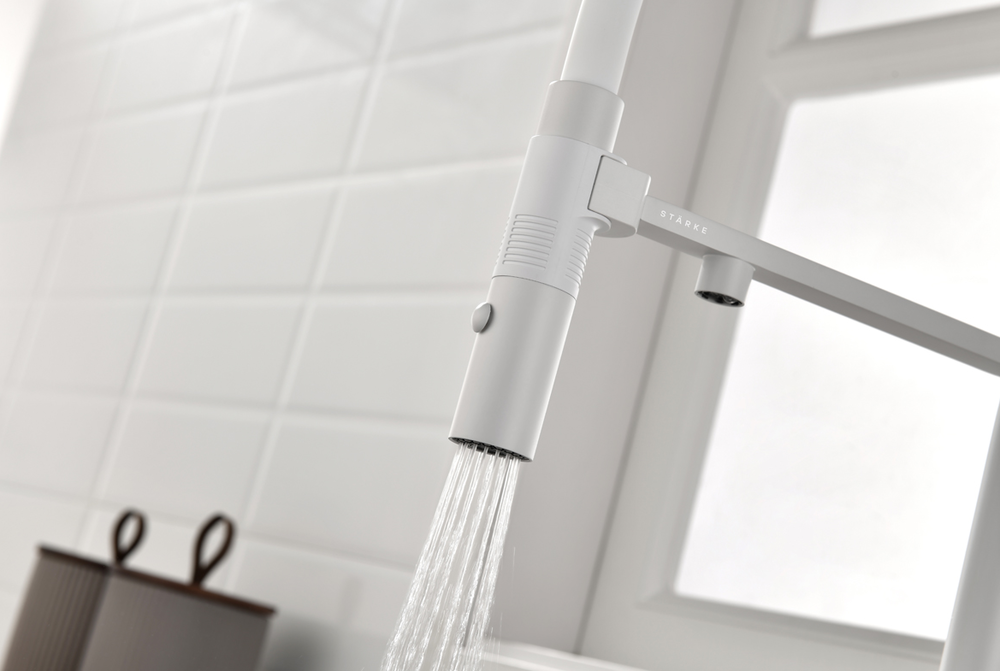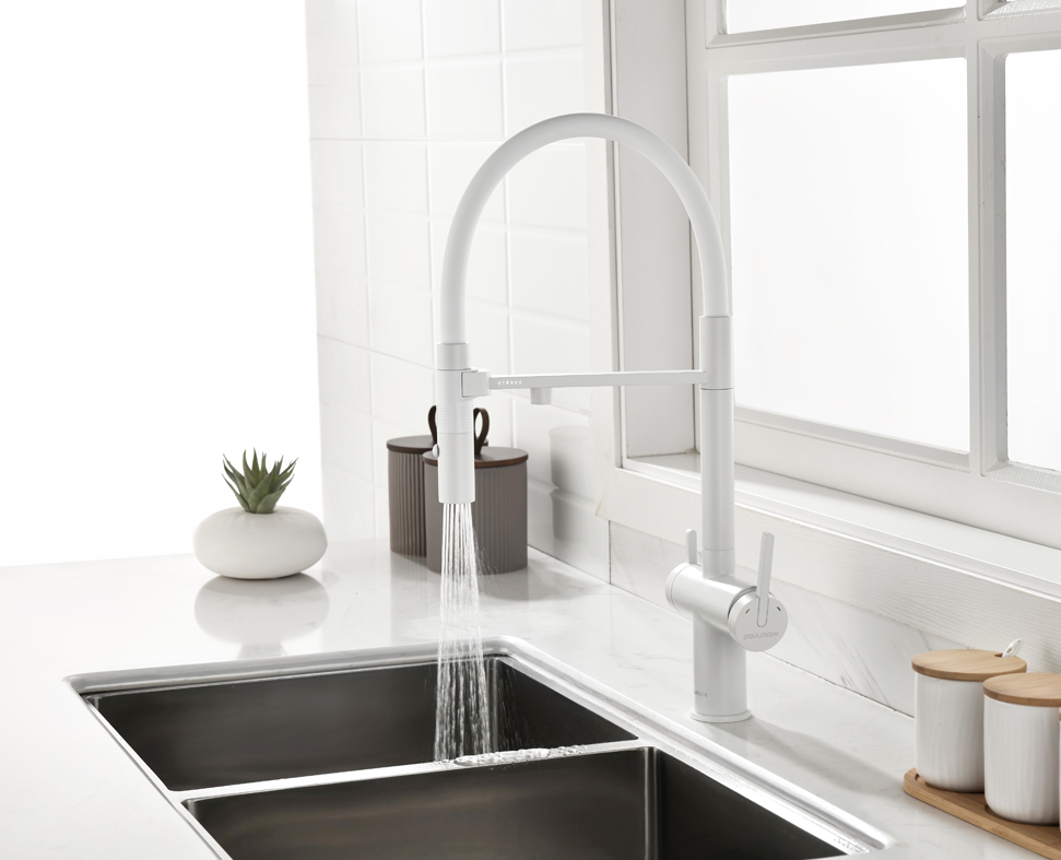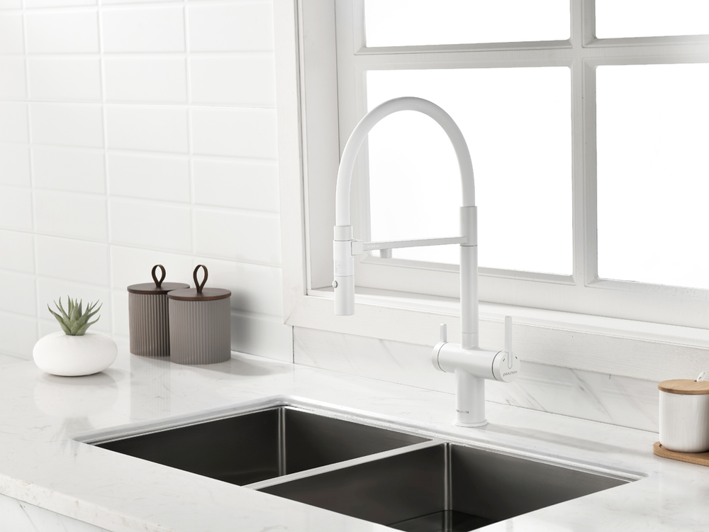 Paulmark GRAVITY, смеситель, белый, белый шланг
