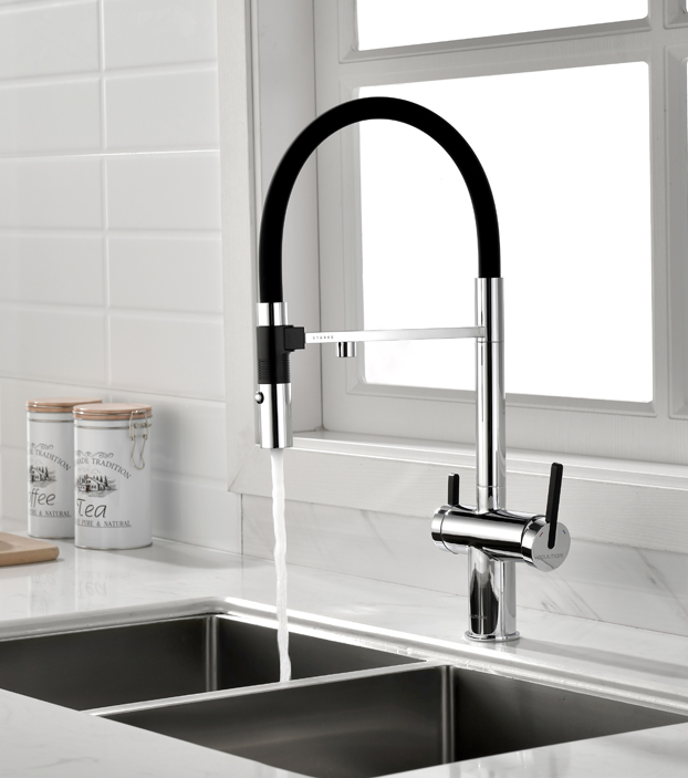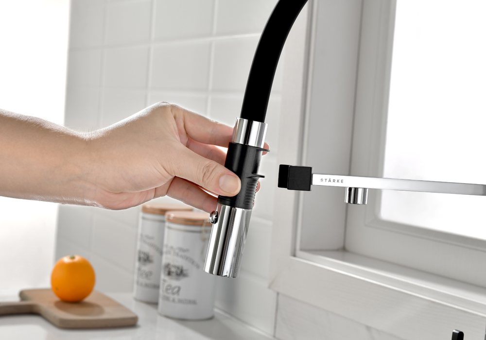 Paulmark GRAVITY, смеситель, хром, черный шланг