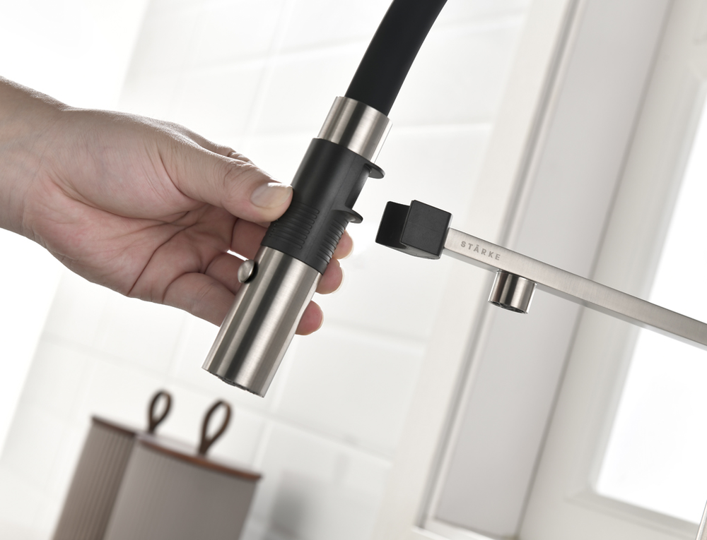 Paulmark GRAVITY, смеситель, никель, черный шланг