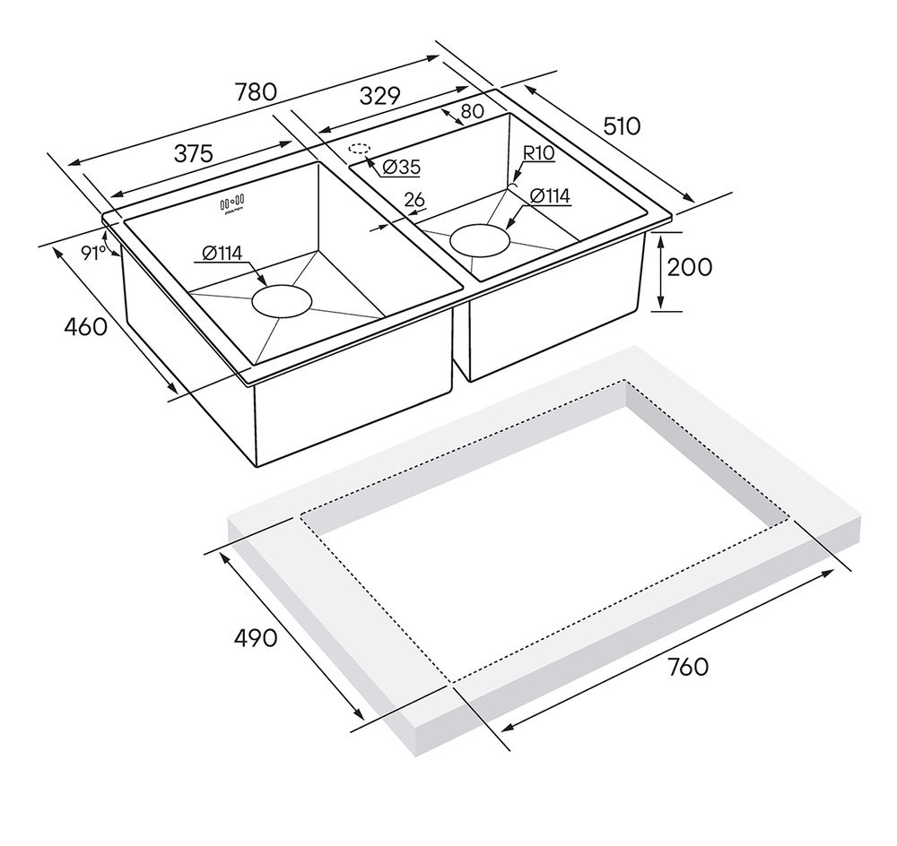 i Наличие и расположение крыла кухонной мойки — слева, справа или с обеих сторон. Крыло оборачиваемой мойки можно расположить с любой стороны.