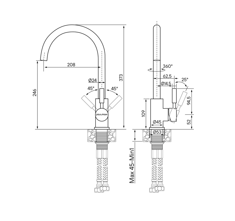 Paulmark HOLSTEIN, смеситель, гранит, графит