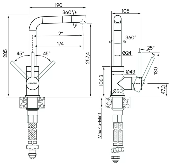 Paulmark HONNER, смеситель, гранит, черный