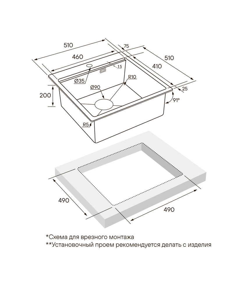 i Расстояние от дна до верхней кромки чаши мойки. Оптимальная глубина — 15-18 см. Чем глубже мойка, тем меньше брызг попадет наружу.