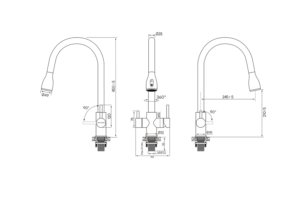 Paulmark LANGE, смеситель, вороненая сталь
