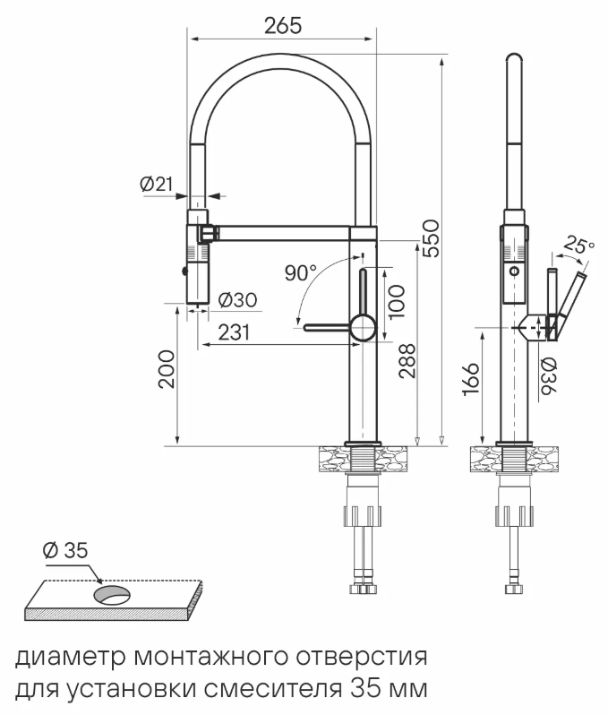 Габариты смесителя (ДхШхВ)