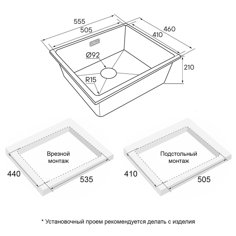 i Расстояние от дна до верхней кромки чаши мойки. Оптимальная глубина — 15-18 см. Чем глубже мойка, тем меньше брызг попадет наружу.