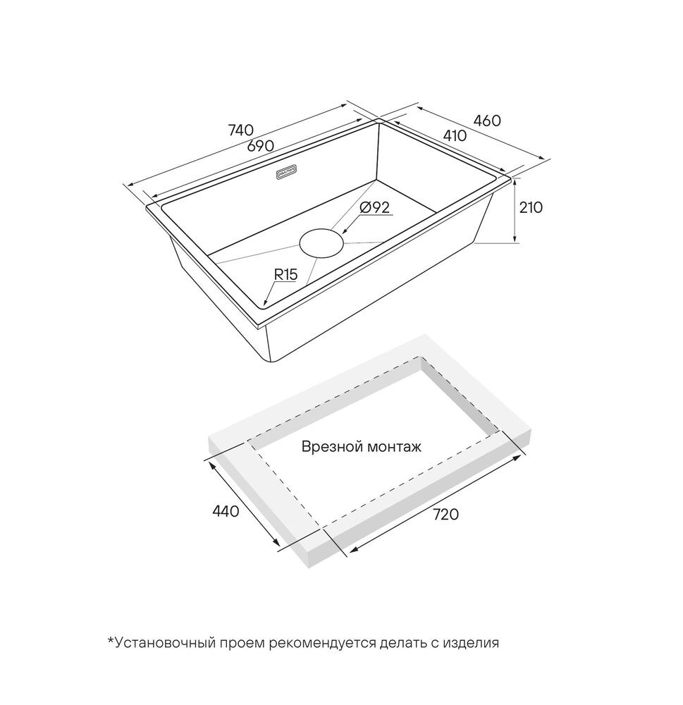 i Расстояние от дна до верхней кромки чаши мойки. Оптимальная глубина — 15-18 см. Чем глубже мойка, тем меньше брызг попадет наружу.