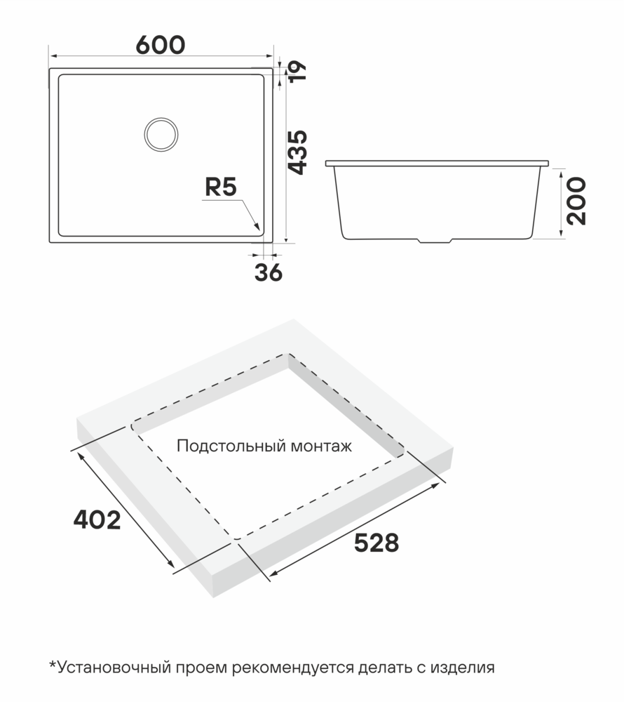 под столешницу |