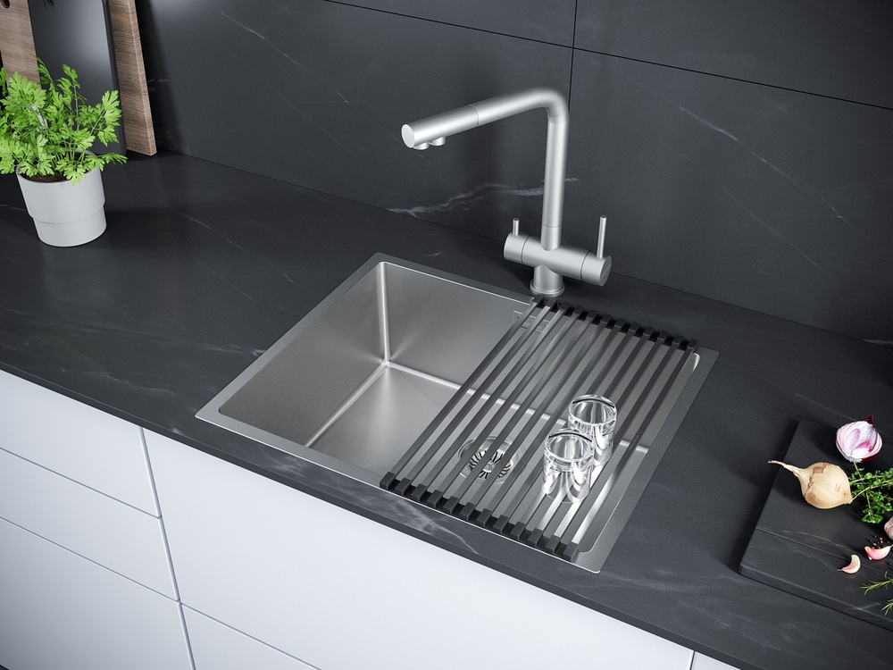i Кроме основной чаши у кухонной мойки может быть одна или две дополнительные чаши меньшего объема. В одну из них можно встроить измельчитель.