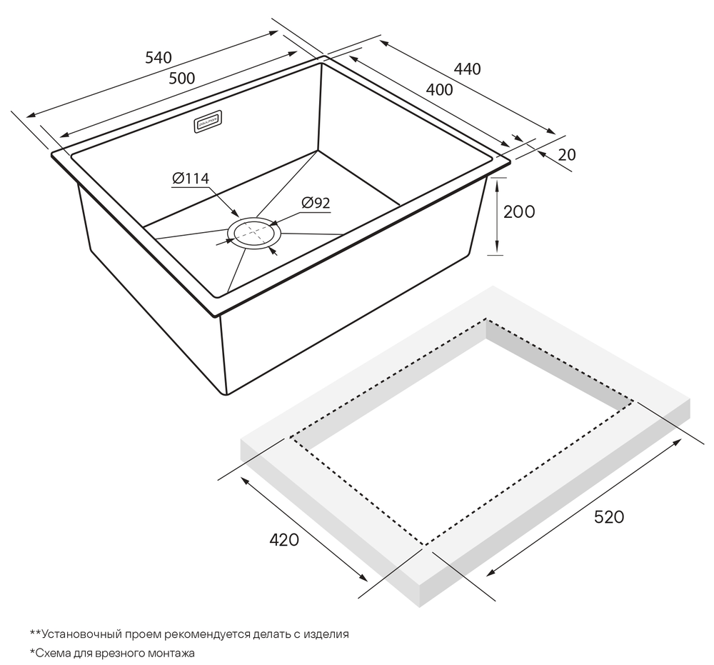 i Расстояние от дна до верхней кромки чаши мойки. Оптимальная глубина — 15-18 см. Чем глубже мойка, тем меньше брызг попадет наружу.
