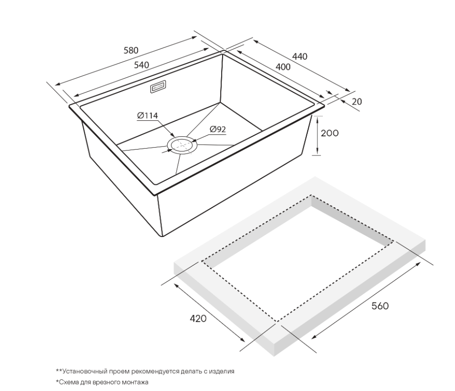 i Расстояние от дна до верхней кромки чаши мойки. Оптимальная глубина — 15-18 см. Чем глубже мойка, тем меньше брызг попадет наружу.