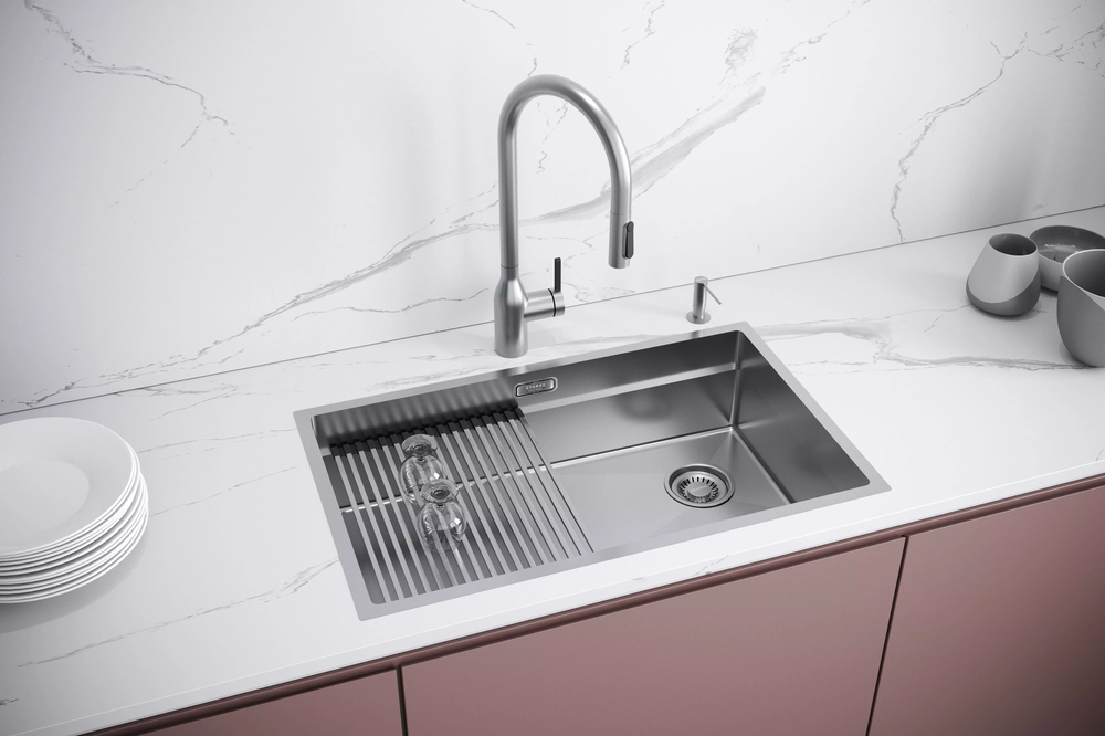 i Кроме основной чаши у кухонной мойки может быть одна или две дополнительные чаши меньшего объема. В одну из них можно встроить измельчитель.