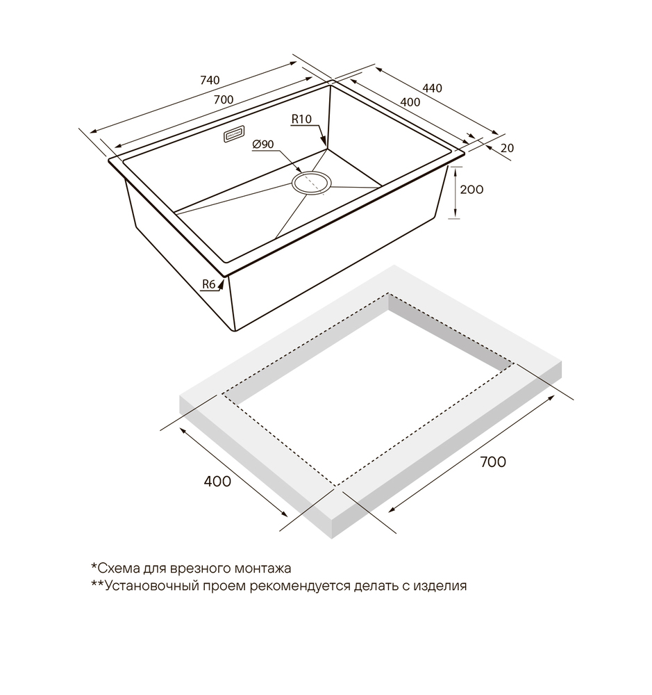 i Расстояние от дна до верхней кромки чаши мойки. Оптимальная глубина — 15-18 см. Чем глубже мойка, тем меньше брызг попадет наружу.