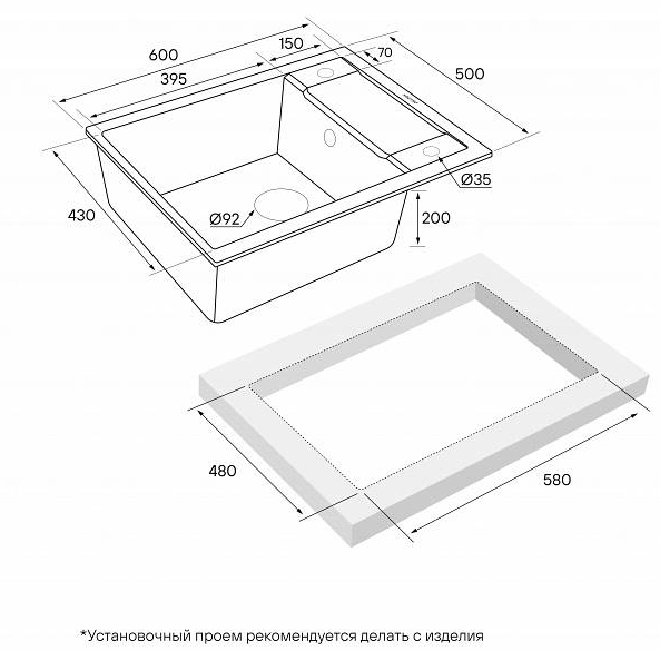 i Расстояние от дна до верхней кромки чаши мойки. Оптимальная глубина — 15-18 см. Чем глубже мойка, тем меньше брызг попадет наружу.