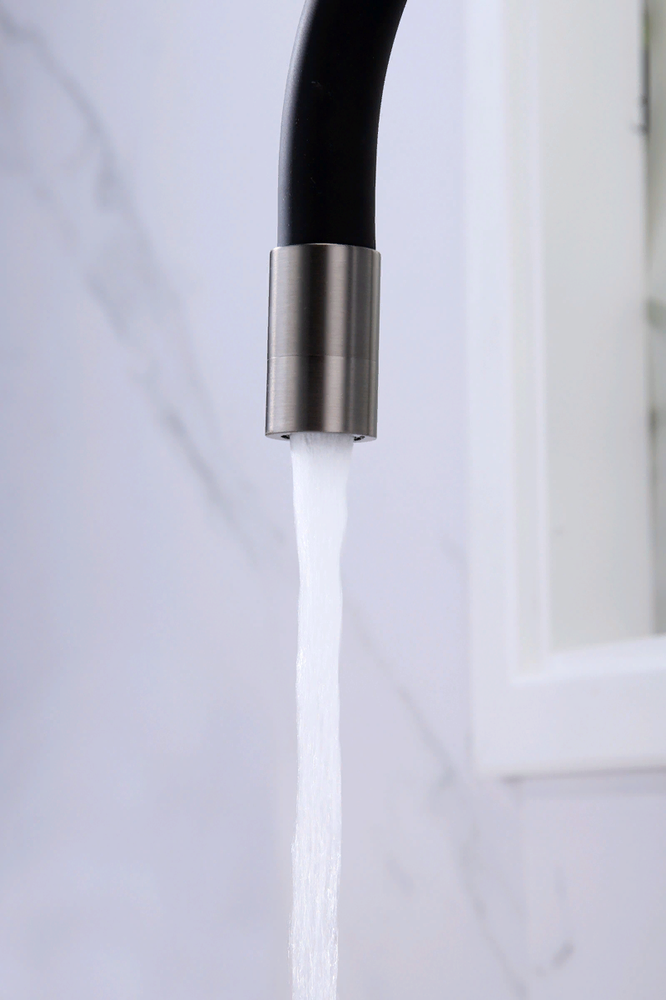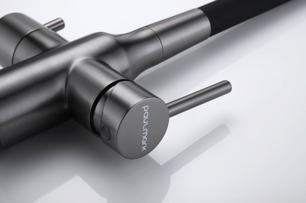 Paulmark SALIX, смеситель, вороненая сталь, черный шланг