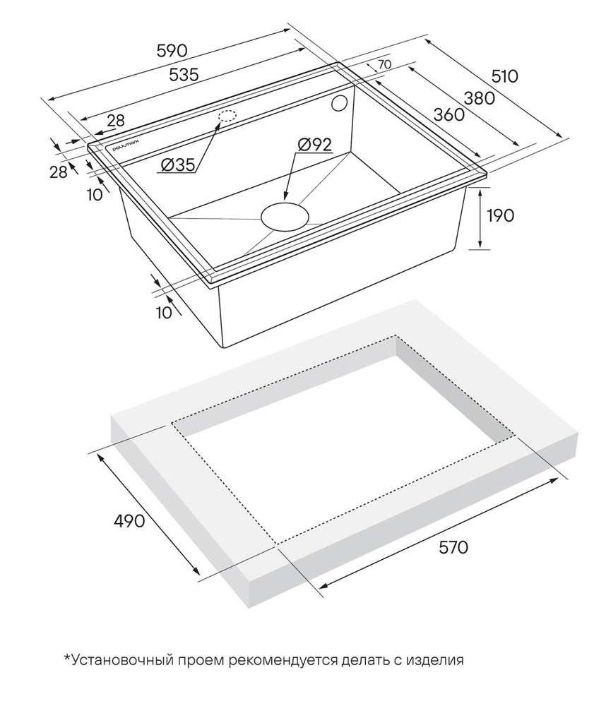 i Расстояние от дна до верхней кромки чаши мойки. Оптимальная глубина — 15-18 см. Чем глубже мойка, тем меньше брызг попадет наружу.