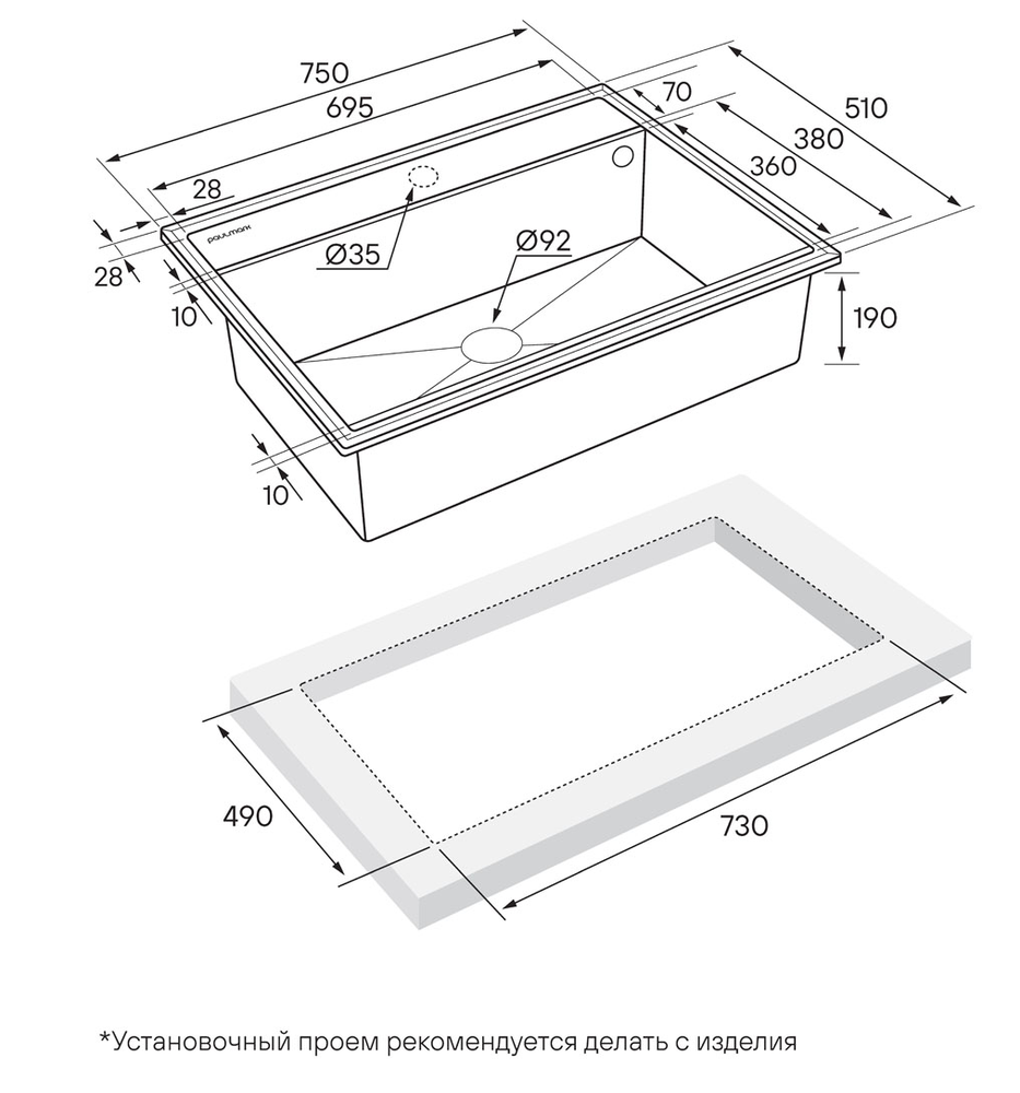 i Расстояние от дна до верхней кромки чаши мойки. Оптимальная глубина — 15-18 см. Чем глубже мойка, тем меньше брызг попадет наружу.