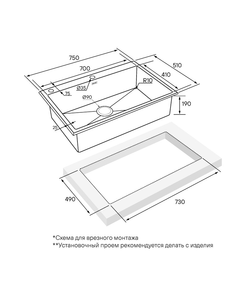 Paulmark KRONER-EDGE 75, мойка, нержавеющая сталь, вороненая сталь
