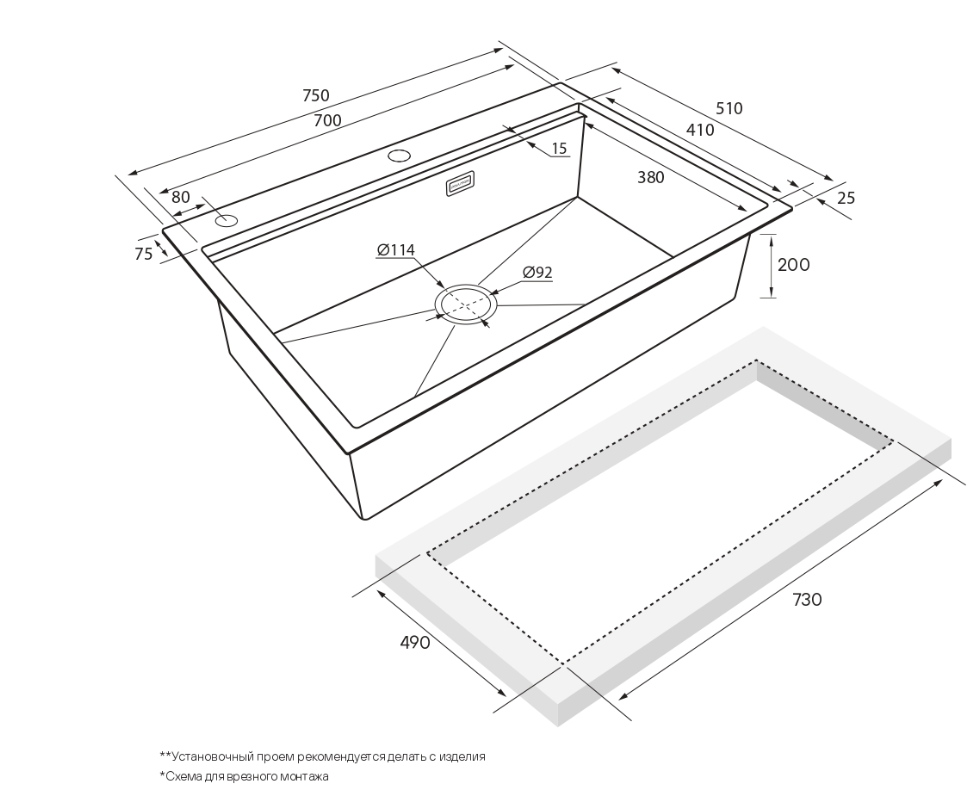 врезная/в уровень со столешницей |