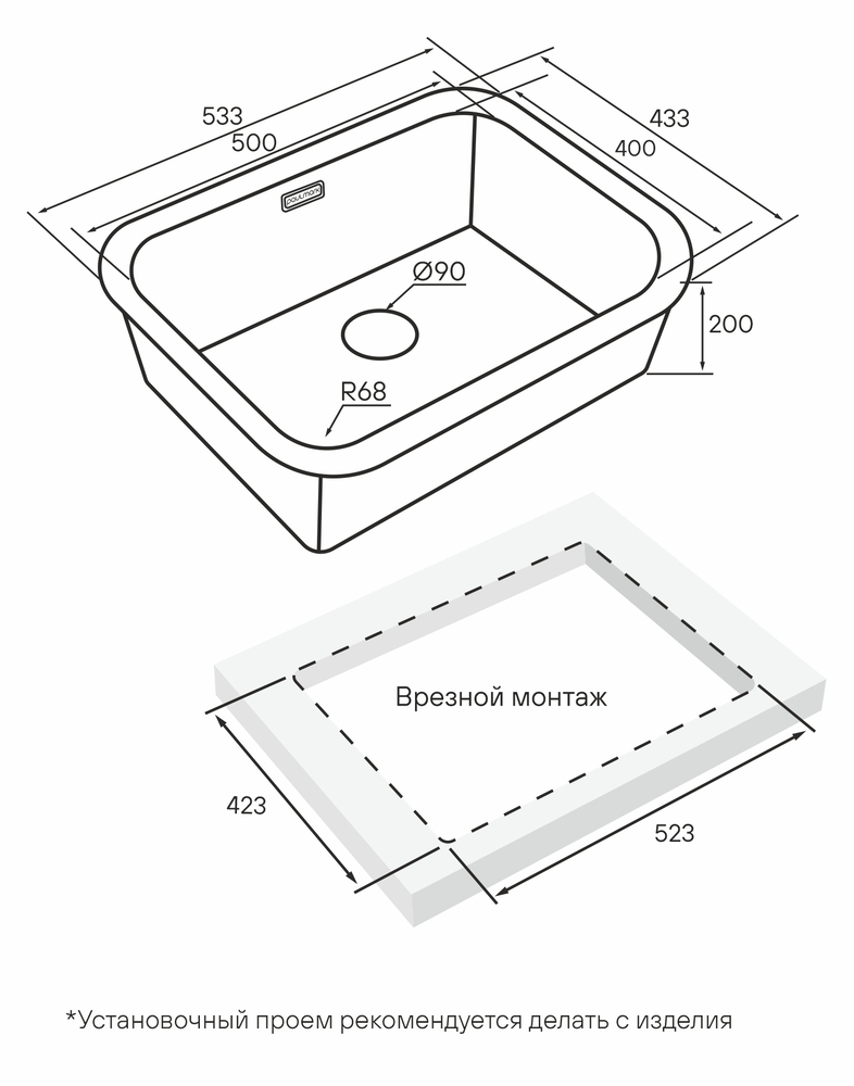 i Расстояние от дна до верхней кромки чаши мойки. Оптимальная глубина — 15-18 см. Чем глубже мойка, тем меньше брызг попадет наружу.