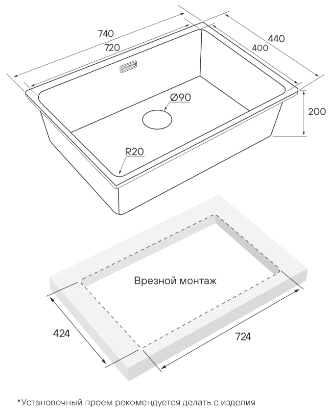 Paulmark VISTA 74, мойка, нержавеющая сталь брашированная