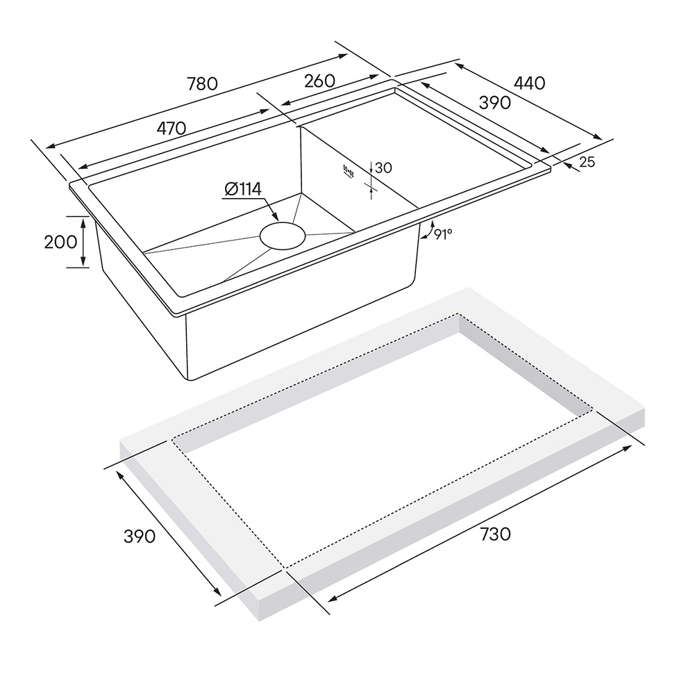 i Наличие и расположение крыла кухонной мойки — слева, справа или с обеих сторон. Крыло оборачиваемой мойки можно расположить с любой стороны.