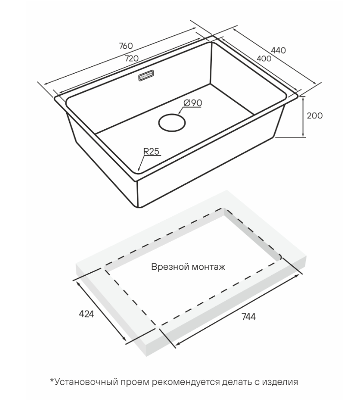 Paulmark YUNI 76 UNI, мойка, нержавеющая сталь брашированная