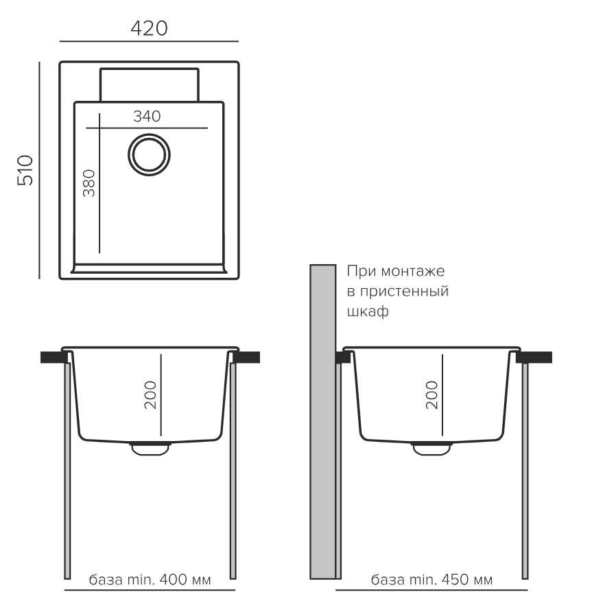 Размеры мойки (ШхДхГ)