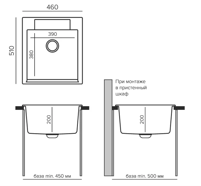 i Чтобы выполнить качественную установку, ширина кухонного шкафа должна соответствовать требованиям, заявленным производителем товара.