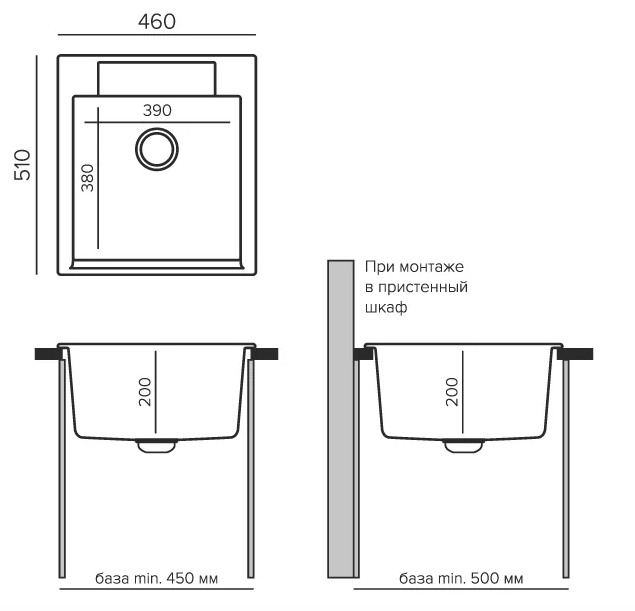 i Расстояние от дна до верхней кромки чаши мойки. Оптимальная глубина — 15-18 см. Чем глубже мойка, тем меньше брызг попадет наружу.