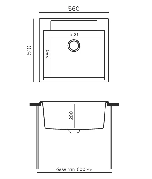 i Расстояние от дна до верхней кромки чаши мойки. Оптимальная глубина — 15-18 см. Чем глубже мойка, тем меньше брызг попадет наружу.