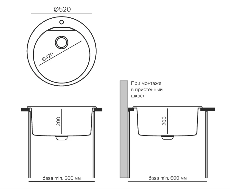 i Расстояние от дна до верхней кромки чаши мойки. Оптимальная глубина — 15-18 см. Чем глубже мойка, тем меньше брызг попадет наружу.
