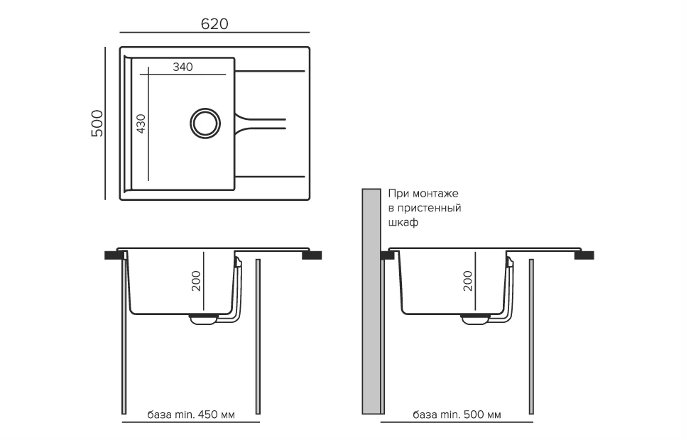 i Наличие и расположение крыла кухонной мойки — слева, справа или с обеих сторон. Крыло оборачиваемой мойки можно расположить с любой стороны.