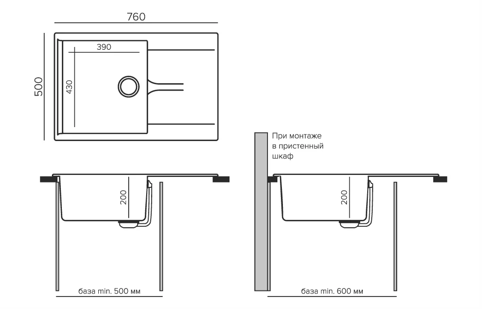i Наличие и расположение крыла кухонной мойки — слева, справа или с обеих сторон. Крыло оборачиваемой мойки можно расположить с любой стороны.