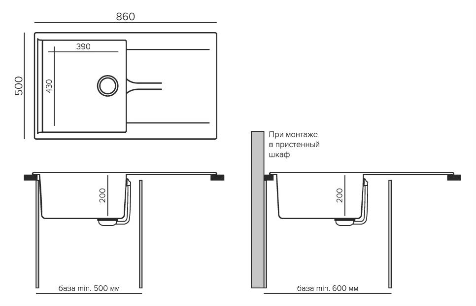 i Чтобы выполнить качественную установку, ширина кухонного шкафа должна соответствовать требованиям, заявленным производителем товара.