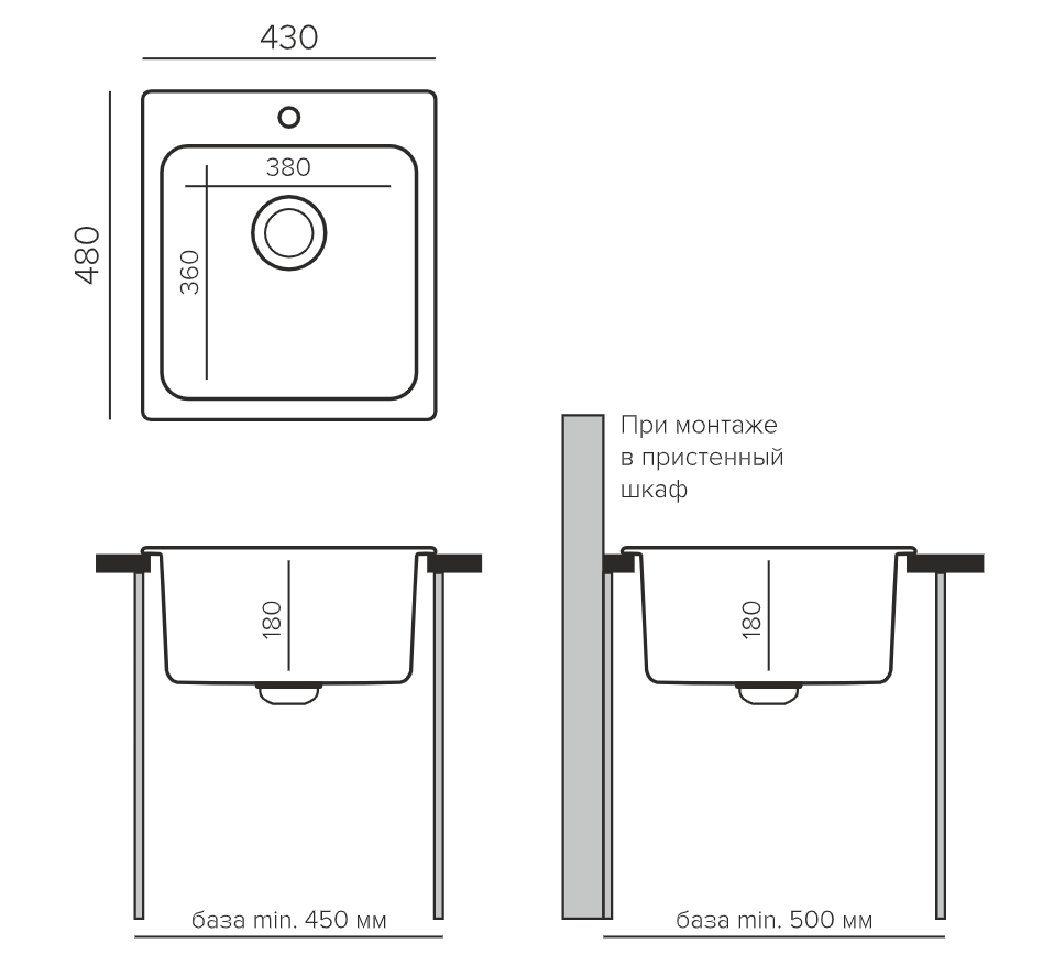 i Расстояние от дна до верхней кромки чаши мойки. Оптимальная глубина — 15-18 см. Чем глубже мойка, тем меньше брызг попадет наружу.
