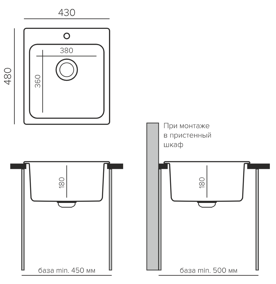 i Расстояние от дна до верхней кромки чаши мойки. Оптимальная глубина — 15-18 см. Чем глубже мойка, тем меньше брызг попадет наружу.