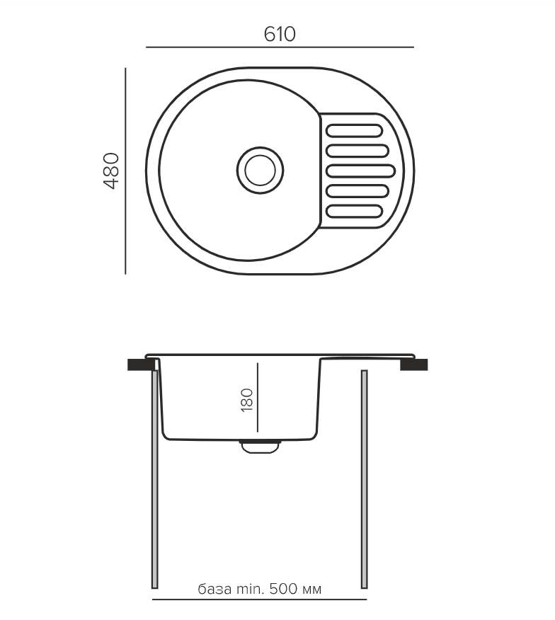 i Расстояние от дна до верхней кромки чаши мойки. Оптимальная глубина — 15-18 см. Чем глубже мойка, тем меньше брызг попадет наружу.