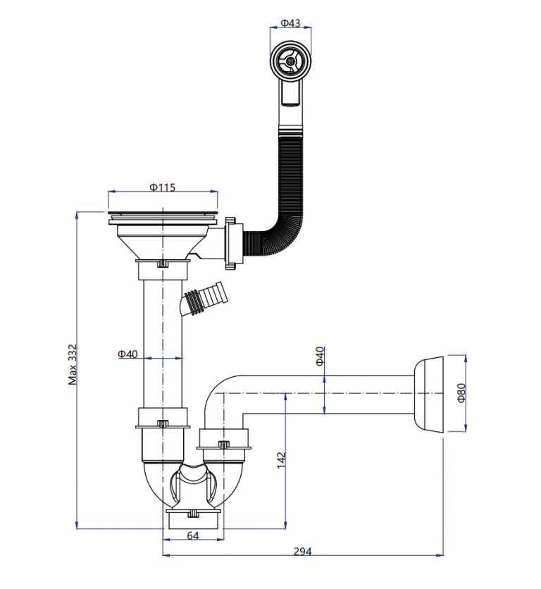 Rivelato 12PB2-P2A сливная арматура для одночашевых моек RINOX, черный