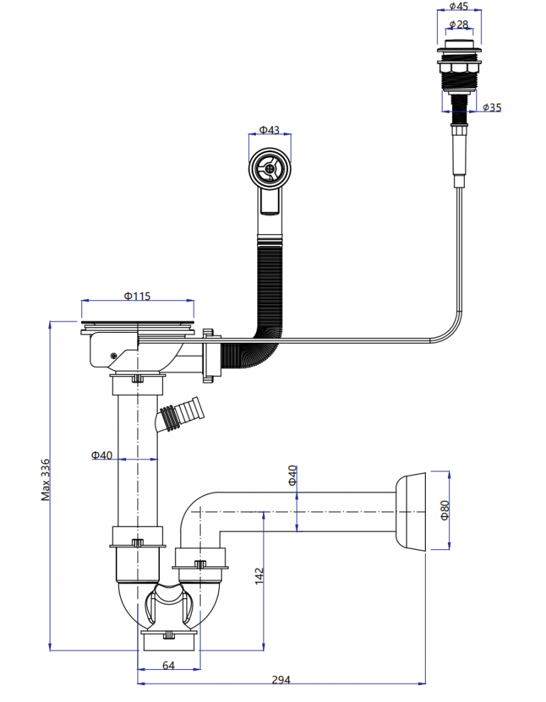 Rivelato 13PB2-P2 сливная арматура для одночашевых моек белый